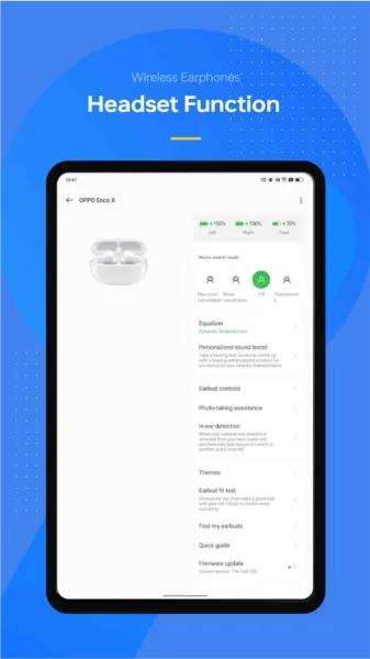 OPPO无线耳机是预置在ColorOS 12及以上系统的应用,支持多种耳机设备。通过OTA可升级固件,连接时能弹窗显电量。它音质细腻、降噪出色、蓝牙5.0连接稳定,还有语音控制等功能,小巧便携续航久。