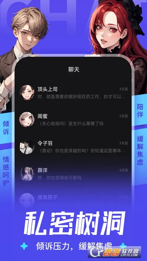 3. 全天不打烊的聊天服务:聊天24小时随时在线,随时随地都能与专属聊天伙伴尽情对话,彻夜长谈也有聆听者。
