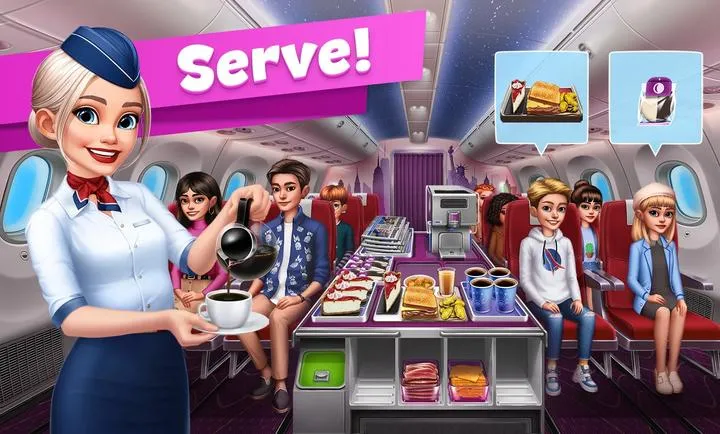 2. **趣味时间管理玩法**:拥有独特且有趣的时间管理机制,仿佛置身于真正的飞机上,每一关都是新挑战,需在规定时间内为顾客提供美味食物,带来快节奏烹饪体验。