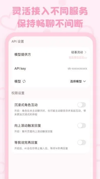 Lovemo免费版为用户带来了别样的聊天体验。它提供多样丰富的工具,增加了趣味互动性,每次有新聊天都会有消息提示。能获取更多气泡设置,让聊天更有趣。在这里,设置方式简单,可直接获取各种说明,还能同时设置多个智能聊天对象。用户能自由设定虚拟机器人,全方位自定义角色,沟通十分方便。从早到晚都有陪伴,多种互动方式开启不一样的交流,还能进行角色扮演。无论是分享生活点滴,还是寻求情感支持,它都能满足,给人带来愉悦和安心的感受。
