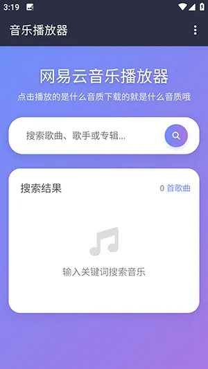 NAN音乐是款音乐播放软件,内置多高品质音源线路,智能调度。支持在线播放、离线缓存,无网络也能听。以高品质音质为核心,有多种特色功能,搜索歌曲便捷,还能提供多种音质下载。