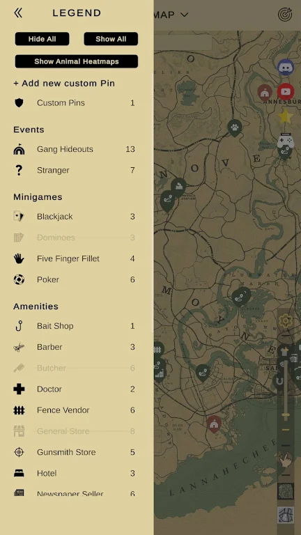 嘿,玩《荒野大镖客2》的朋友们看过来!要是你遇到地图与追踪器不匹配的问题,那这款工具绝对能帮到你。它功能超强大,能解决不少游戏里的麻烦事儿。通过自定义图钉,你可以在地图上标记各种重要地点,像战利品刷新点、狩猎区域啥的,再也不怕忘掉啦。动物热力图能清晰展示动物出现热点,帮你快速找到稀有动物。收藏品与位置追踪器可全面管理物品收集,标记已发现和未找到的,还能查看进度,避免重复搜索。它还有全局搜索和筛选功能,能快速定位所需信息。智能针能瞬间聚焦重要地点,YouTube指南链接让你轻松掌握技巧,离线也能流畅使用,还会实时更新内容。有了它,不管你是追求百分百完成度,还是喜欢狩猎、探索,都能更轻松地在西部世界畅玩,高效完成各种目标,享受游戏乐趣。
