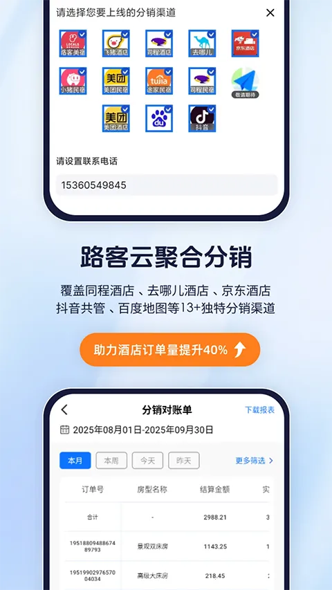路客云安卓版是一款酒店民宿公寓管理系统,适配多门店经营与多岗位协同。支持23全渠道直连与13分销渠道聚合,具备智能价态、保洁、报表等功能,通过多端操作实现全流程自动化,助力降本提效。