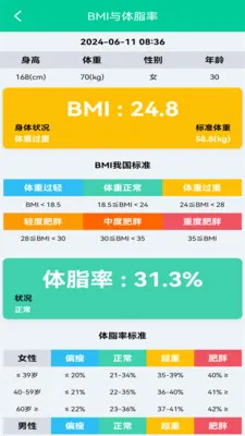 2. 结果自动保存:会将BMI与体脂率的计算结果自动保存到历史记录,方便随时查看。