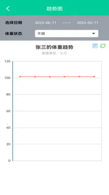 3. 具备体重记录功能:支持多人的体重记录,可根据时间段和体重状态进行查询,并生成图形分析数据,还提供体重记录的BMI与体脂率数据分析。