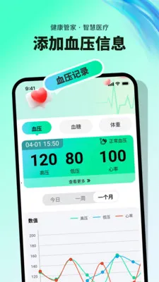 2. 精准数据管理:录入的数据会被系统有序整理,以清晰图表呈现。能随时查看历史数据,通过曲线走势直观了解指标波动,掌握健康变化趋势。
