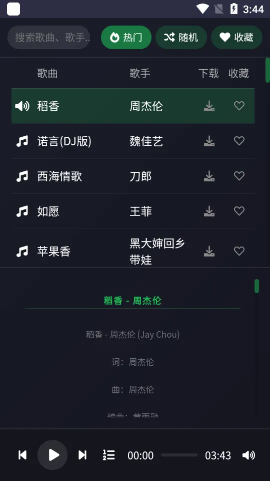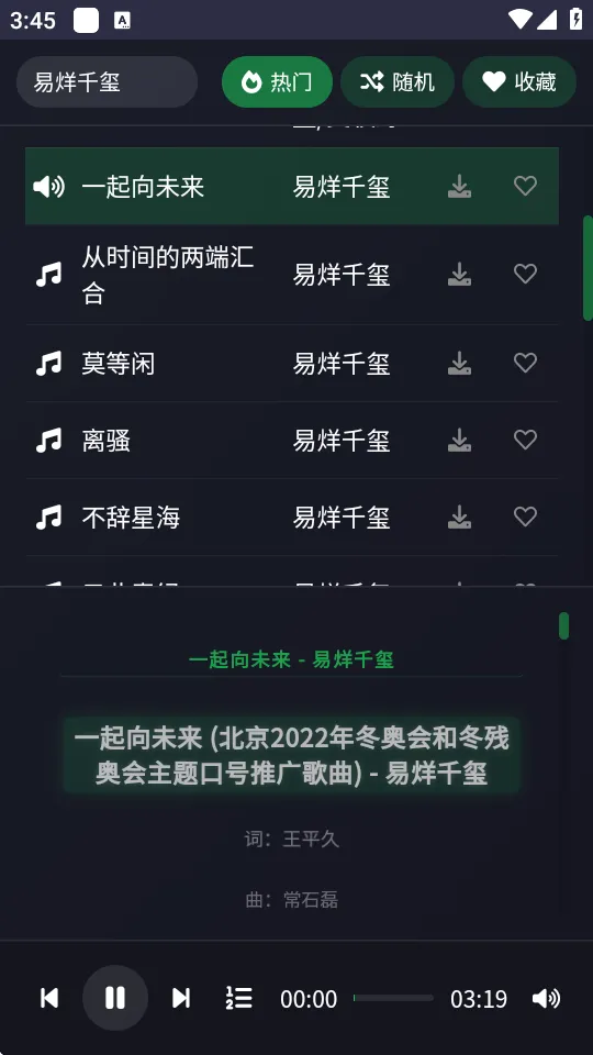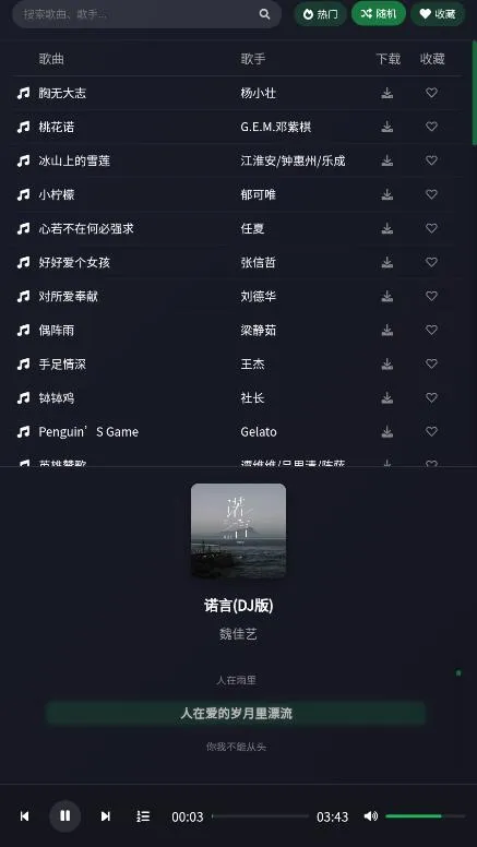 4、操作简单便捷:界面设计简洁直观,无需注册即可使用,用户可轻松搜索、播放、下载音乐,还能自由创建和编辑播放列表。