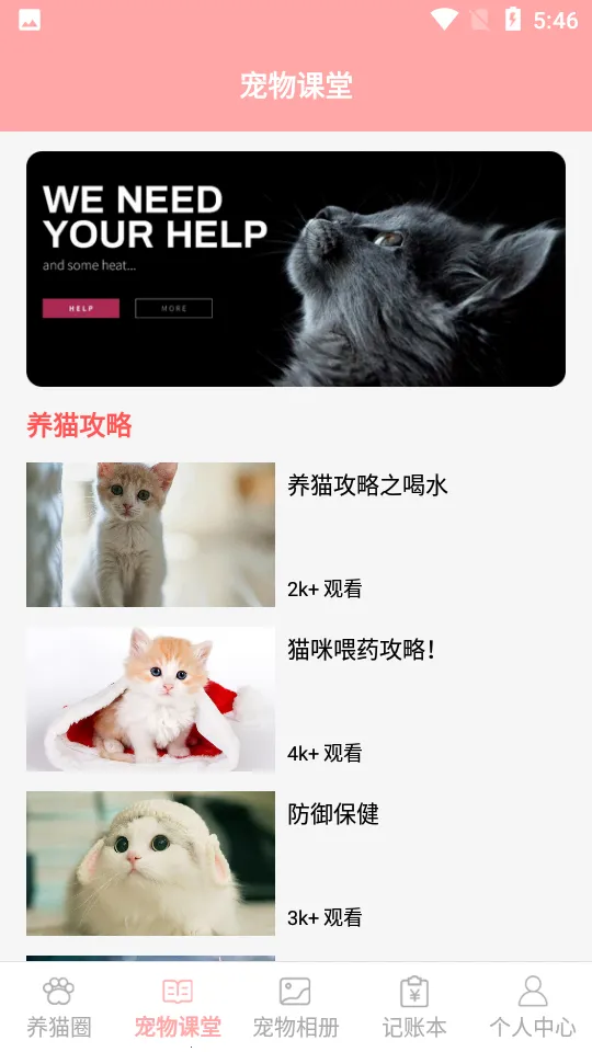 2、知识攻略丰富:可查询各种小猫知识,有各式各样养猫攻略,让用户轻松掌握养猫要点。