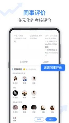 4、考核方式多样:支持上级评价、同事评价、隔级评价等多元化考核评价,绩效结果可校准且可视化分布。