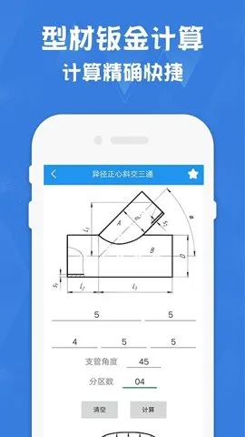 钣金放样展开计算器是适用于管道、钣金设计等场景的计算工具。含多种钣金构件,输入数据自动输出展开图,计算精准快捷。支持边带控制与几何计算,资料查阅方便,工具免费,满足施工与设计需求 。