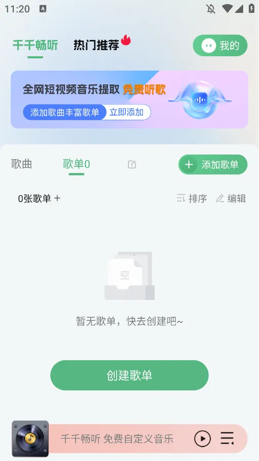 千千畅听2025官方正版是一款音乐处理软件,支持从抖音等平台一键提取热门短视频音乐,多格式下载。具备音频剪辑、定制歌单等功能,无广告,可离线管理音乐,满足多样音乐需求 。