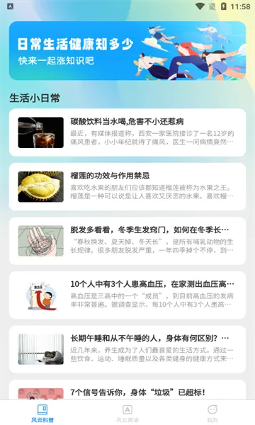 风云快刷2025官方正版是免费资讯软件,提供多领域科普知识,有分享互动平台与个性化推荐。亮点包括健康知识与英语短句,优势有免费阅读等,还具备及时更新等特点,解答常见问题助力知识获取。