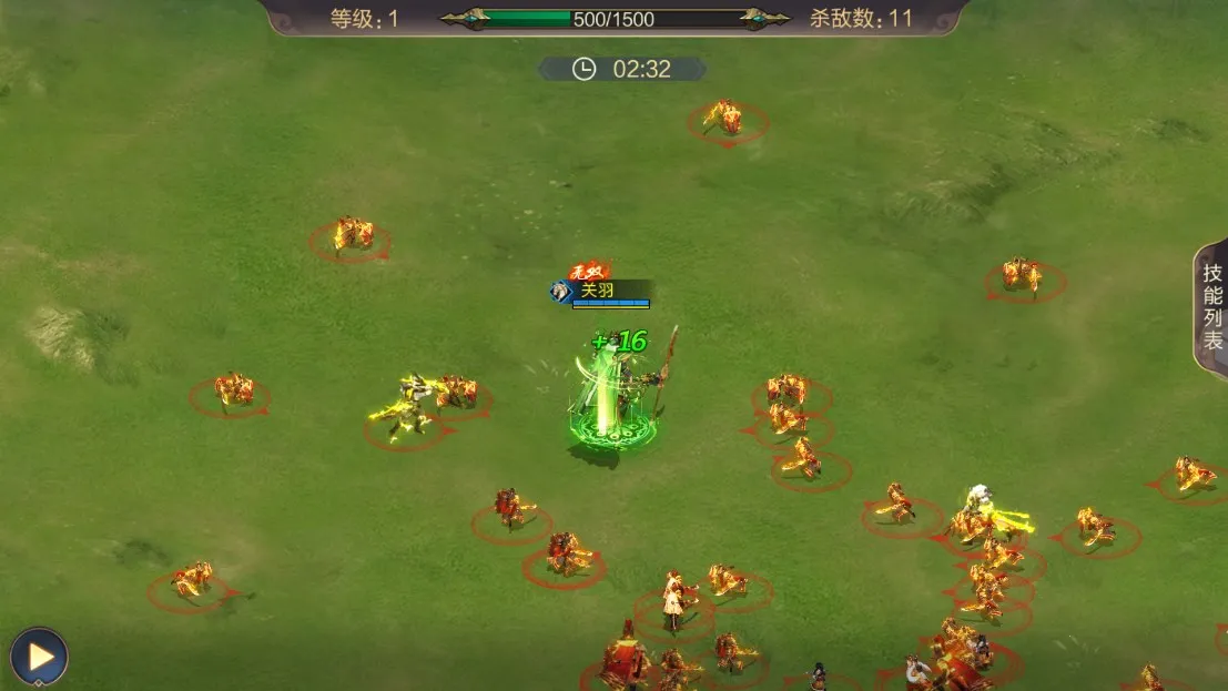 2、割草玩法:超爽割草玩法,能在千军万马混战中自由冲杀,体验以一当百的快感。