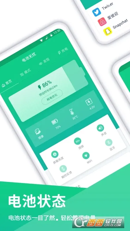 电池电量无忧是一款监控手机电量的软件,能全面检查控制电量,实时了解电池状态。它具备显示各功能可用时间、检测耐磨等特点,还有多种省电模式、垃圾清理等功能,助您轻松管理电池。