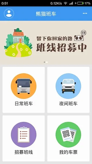 熊猫班车 2025 是出行专家 app。适合通勤不便人群,如多次换乘、路堵车挤者,还有准妈妈、打拼白领等。具备购票、定位等功能,可申请新线路,海量班线覆盖大连主城区,舒适省心还省钱 。