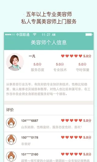 1、专业美容师:直聘5年以上经验的专业美容师,经培训考核后上岗。