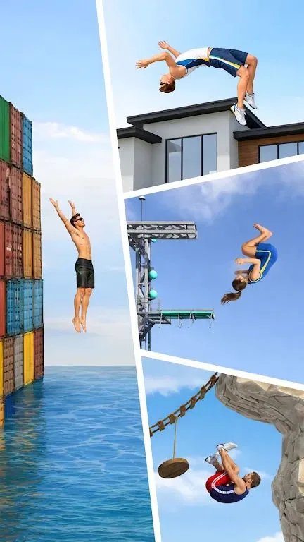 4. 丰富游戏模式:有极限挑战模式,包含数百个不同地形关卡;还有潜水模式,可在特制泳池和海洋环境练习潜水技巧。简单操控,一键操作易上手,离线也能畅玩。