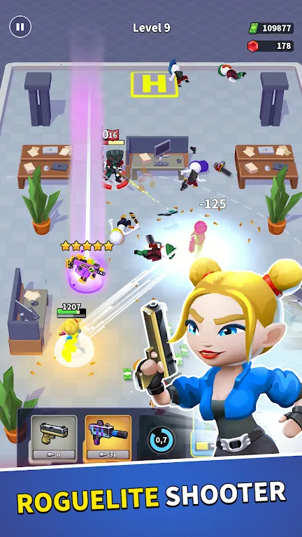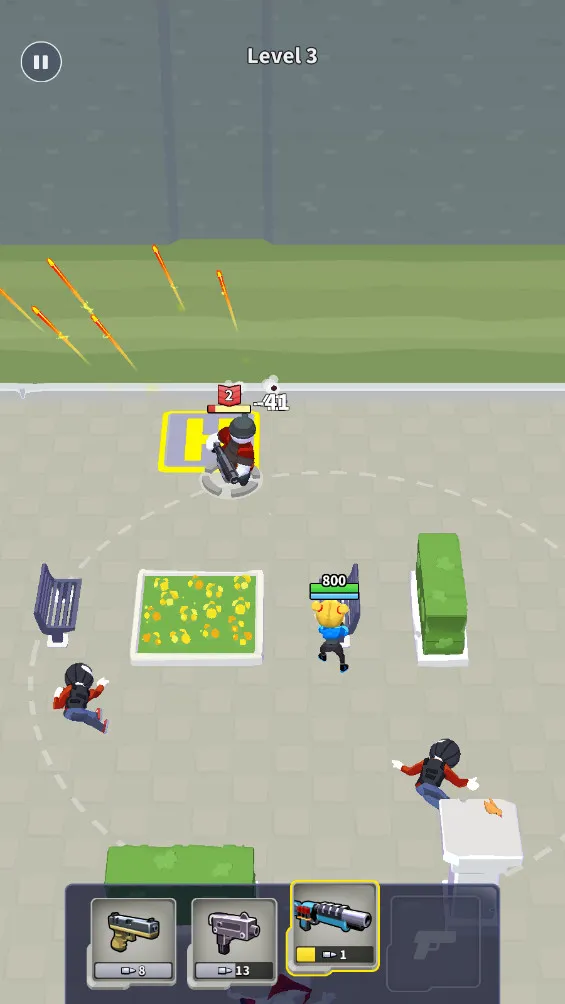 2、操作简单:通过滑动屏幕就能控制角色移动和射击,轻松上手,尽情享受射击的快乐。