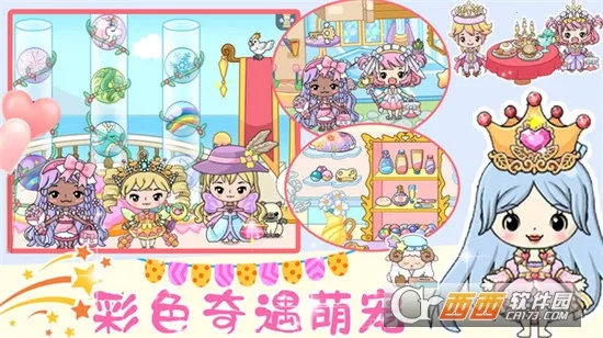 1、丰富场景:拥有梦幻喷泉、户外秋千花园、萌宠之家等众多场景,开启奇妙城堡环游记。