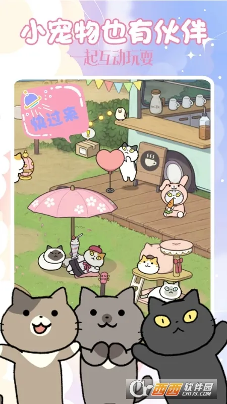 2、丰富玩法元素:能为小动物准备食物和玩具,去商店购物获取道具,解锁新装饰和玩具,打造温馨空间。