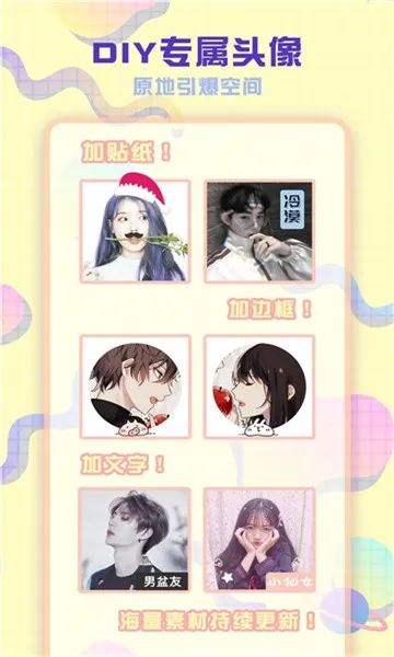 4、紧跟潮流:展示当前流行的头像风格和素材,让用户轻松紧跟时尚潮流,拥有符合当下趋势的个性头像 。